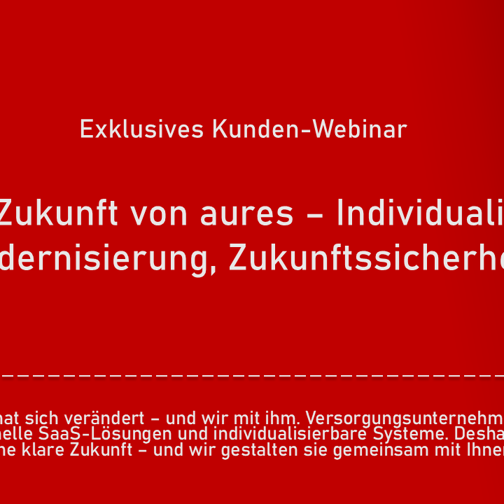 Webinar: Die Zukunkt von aures 18. Februar 2026 Kunden-Webinar: Die Zukunft von aures 13. März 2024 Sie sind aures Kunde und interessieren sich für die Zukunft von aures? Dann melden Sie sich jetzt Jetzt lesen
